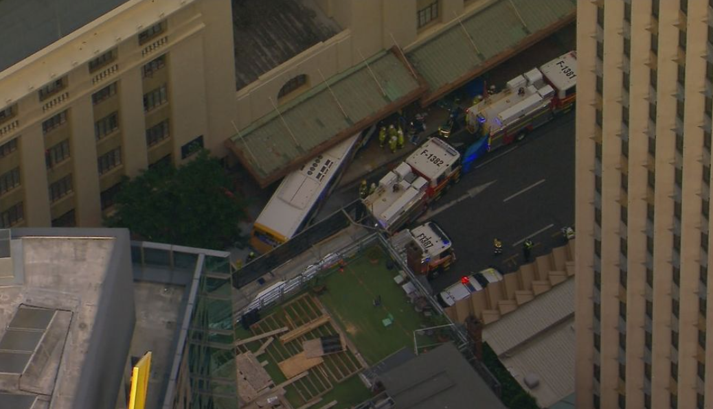 Mr Simpson was shown CCTV footage of Selby turning the bus away from Brisbane's Central train station at an intersection before swerving onto the footpath.