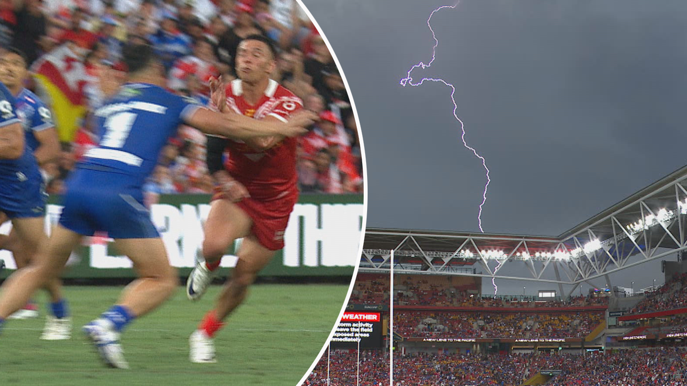 The Pacific Championships at Suncorp Stadium were suspended over lightning fears, causing the longest delay in rugby league history.